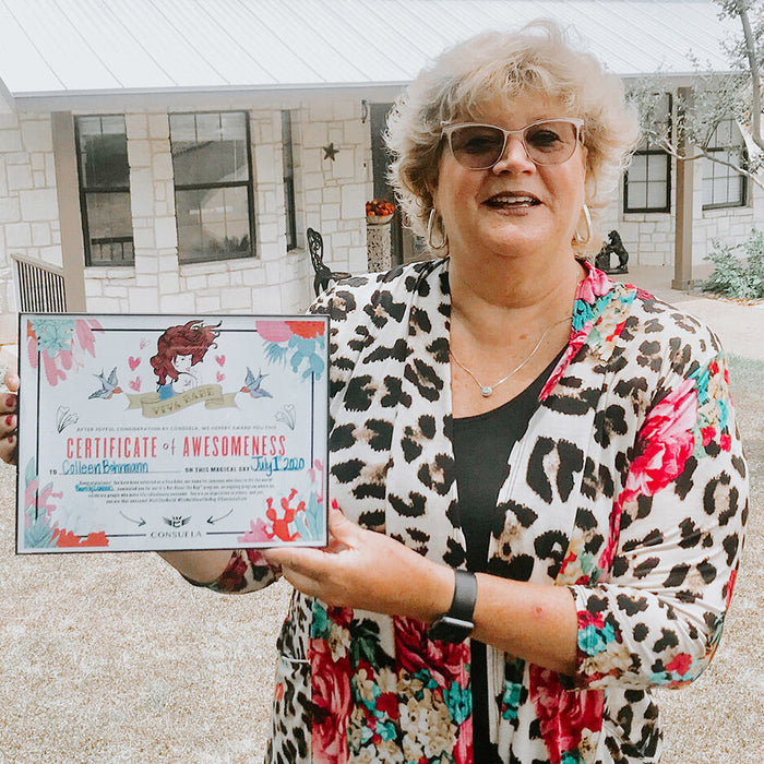 From one Viva Babe to another, Viva Babe Beverly nominated Colleen for her stellar career, her tenacity in hard times, and her ridiculously awesome perspective on life. In 2018, we celebrated Beverly through our It’s Not About the Bag program; She wanted to pay it forward by nominating Colleen, someone she truly admires. Beverly says, “In my 27 years of education, I have worked with many professionals. Last summer, I was given the opportunity to work for someone I had admired for so many years. Colleen is a 35-year Education veteran who has served as a teacher, principal, director, and Executive Director for Learning Support Services” in a San Antonio-area school district.