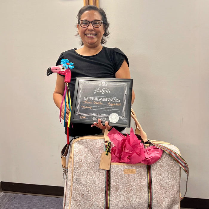 Congratulations to our newest Viva Babe, Laura! We are beyond thrilled to honor Laura, whose strength, kindness, and positive spirit have touched countless lives at work, in her family, and across the community. Her Viva Babe surprise came during a staff meeting, where her boss, Vicky, read her heartfelt nomination. As the room filled with cheers and applause, Laura was left speechless, overwhelmed by the recognition and thoughtful gifts.