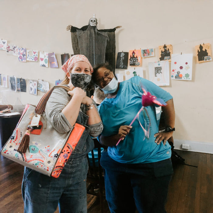 That changed when a friend of hers introduced her to the Next Step Clubhouse, a special clubhouse for adults with special needs. Jimmy says, “She went to uptown Charlotte and fell in love with the place, the people, and the program.” She visits the Clubhouse every Wednesday morning for art with her friends there. Clubhouse members love painting with Lisa!“The participants are able to produce art for auction at the yearly gala and I think they raised $1000 the first year. The following year with planning, the art auction expanded and went online, and more money was raised. I’m sure next year will be even bigger. She does this while working 50-60 hours a week at her store and caring for our family,” Jimmy says.