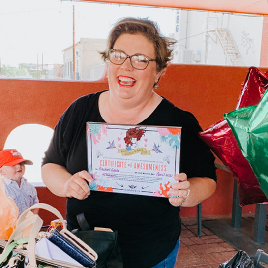 Rachel is a former teacher turned writer, speaker, and author, lives in Wiggins, Colorado, and was nominated by her friend, Val. They met three years ago at a new job. Val says, “We hit it off and started a solid, fast friendship like we had known each other since grade school. The type of friends that would have the 80’s clear phones and talk under our blankets about nerd stuff...not boys.”