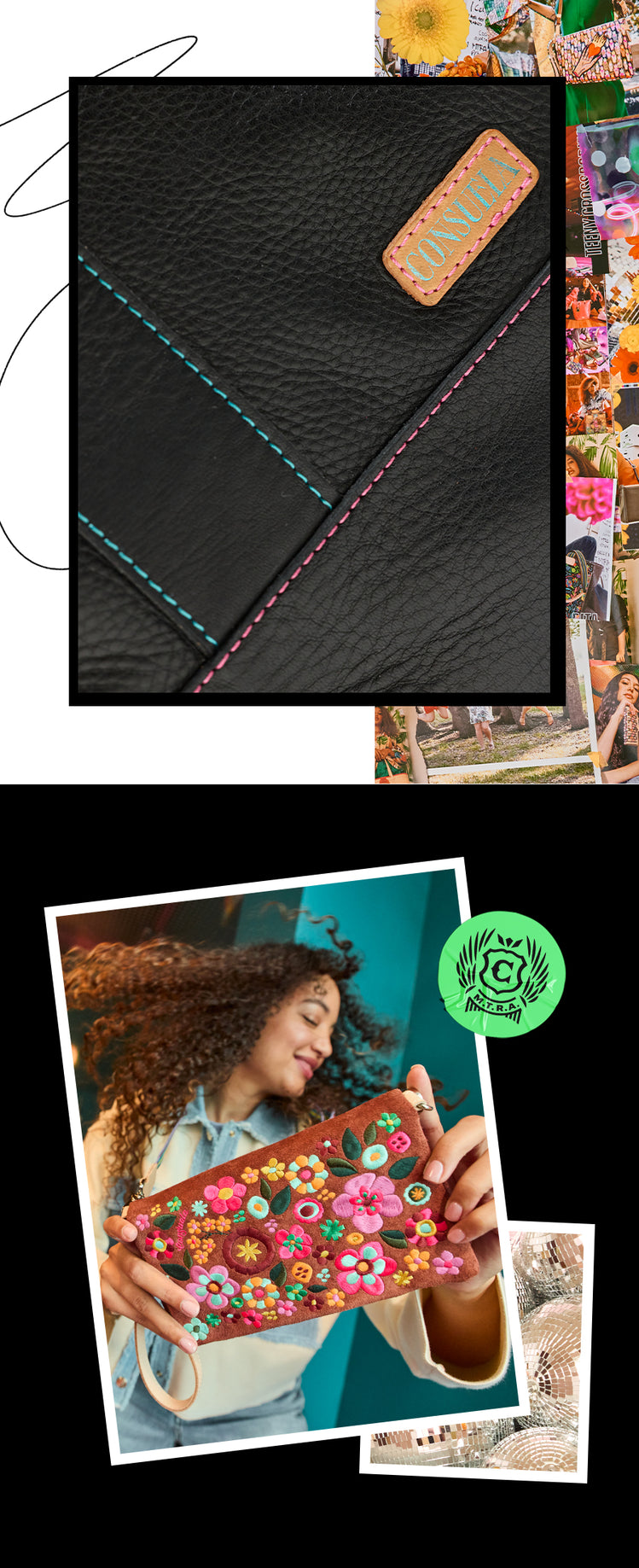 We use vivid colors and unexpected textures each season as these things have a physiological effect on us. There are many studies around the impact that color has on our state of mind and happiness. The color and textural juxtapositions get our endorphins flowing. This is why people describe the bags as ‘joyful’, and that is foundational to the Art of the Unmatched™.