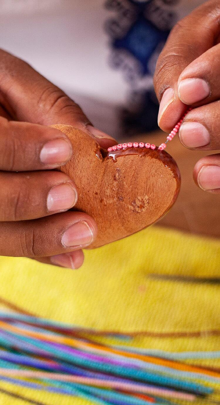 Meet the artisans working with Consuela across different techniques, including chaquira beadwork, weaving, and paper mâché.