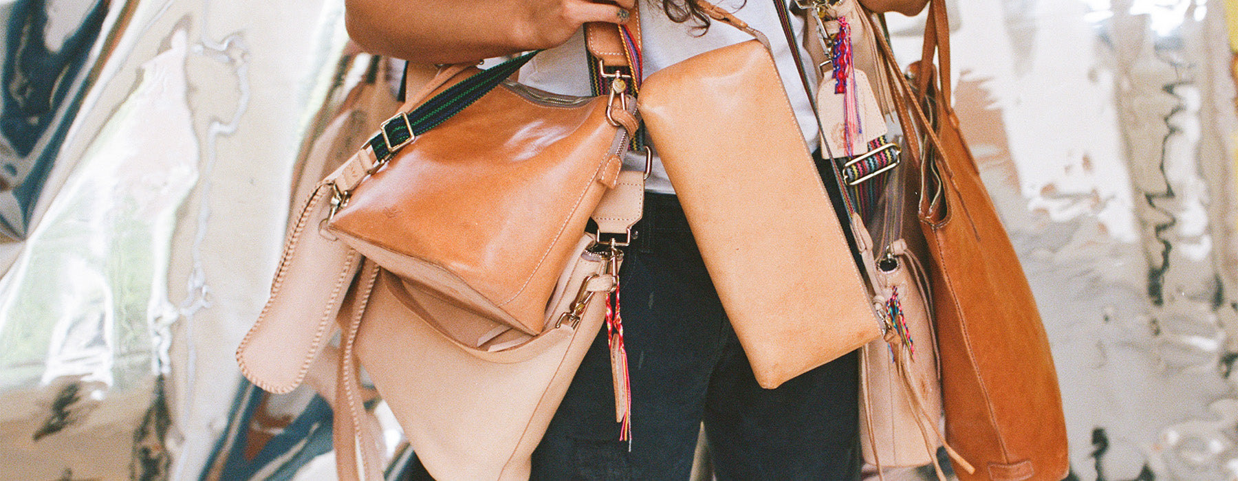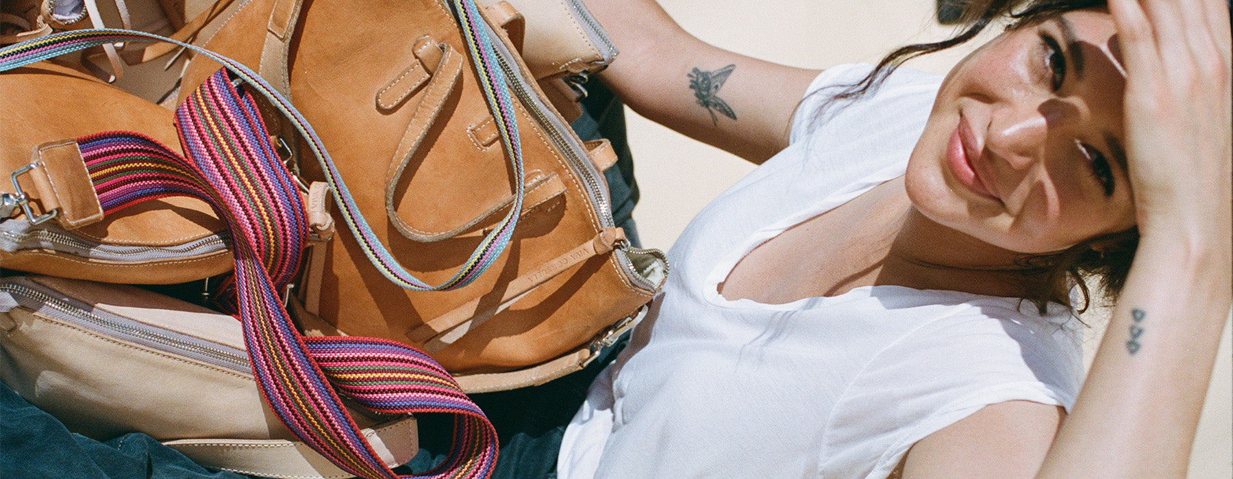 Our Diego leather is a natural vegetable-tanned leather with no dyes or chemical finishes. We love this leather as it is representative of our core values and mission to find joy in the journey. This leather will develop a beautiful, rich patina over time and with exposure to sun and water, burnishing to a buttery tan hue making each piece unique. You will find our Diego leathers throughout our collection as trim, handles, luggage tags, branding elements, and even bag exteriors. Explore below for tips on how to care for your Diego leather.