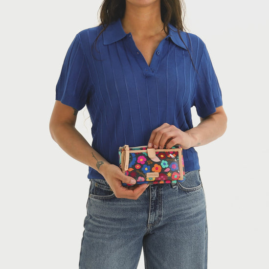 Our Slim Wallet carries cards and cash without weighing you down. Open the snap closure to reveal an ID window pocket, 12 card slots, and 4 slide pocket compartments in this versatile and colorful wallet.