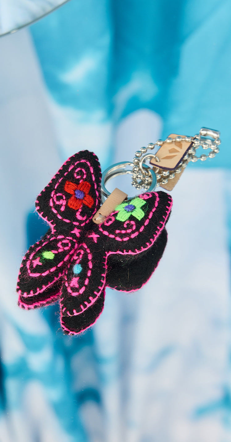 The Mariposa, Spanish for butterfly, has been an iconic design motif in the James Avery jewelry line for years, symbolizing change and renewal. As a representation of an ever-evolving life full of possibilities, this bold artistic Mariposa Felt Handbag Charm manifested from the collaboration between Consuela x James Avery. Each vibrant felt butterfly is handmade with love – highlighted by cheerful hand-embroidered flowers. Add this charm to any bag, keychain, or backpack as an uplifting companion to your day.