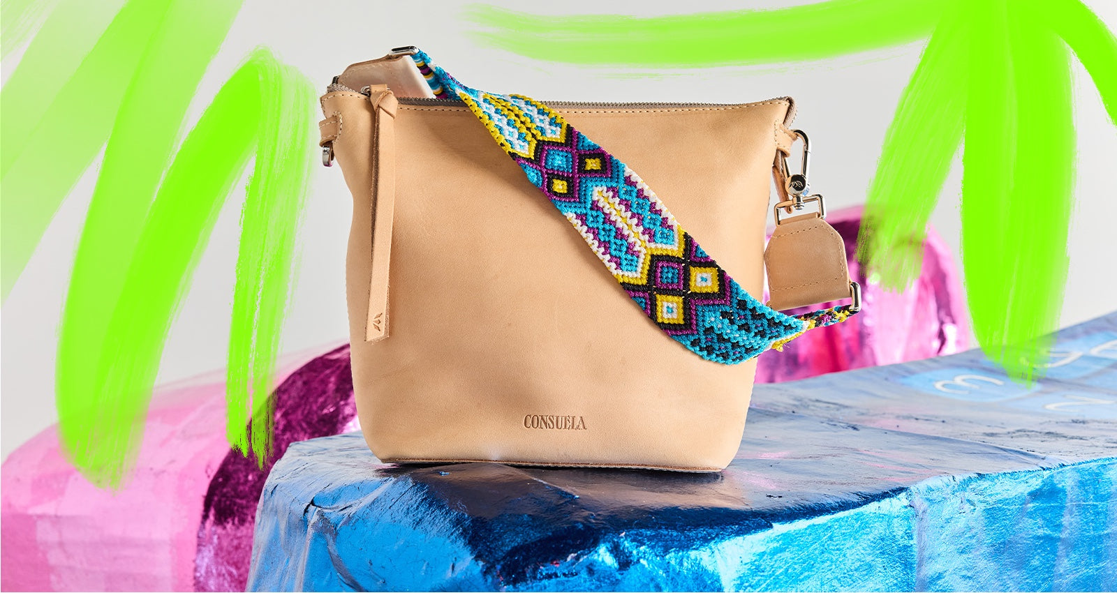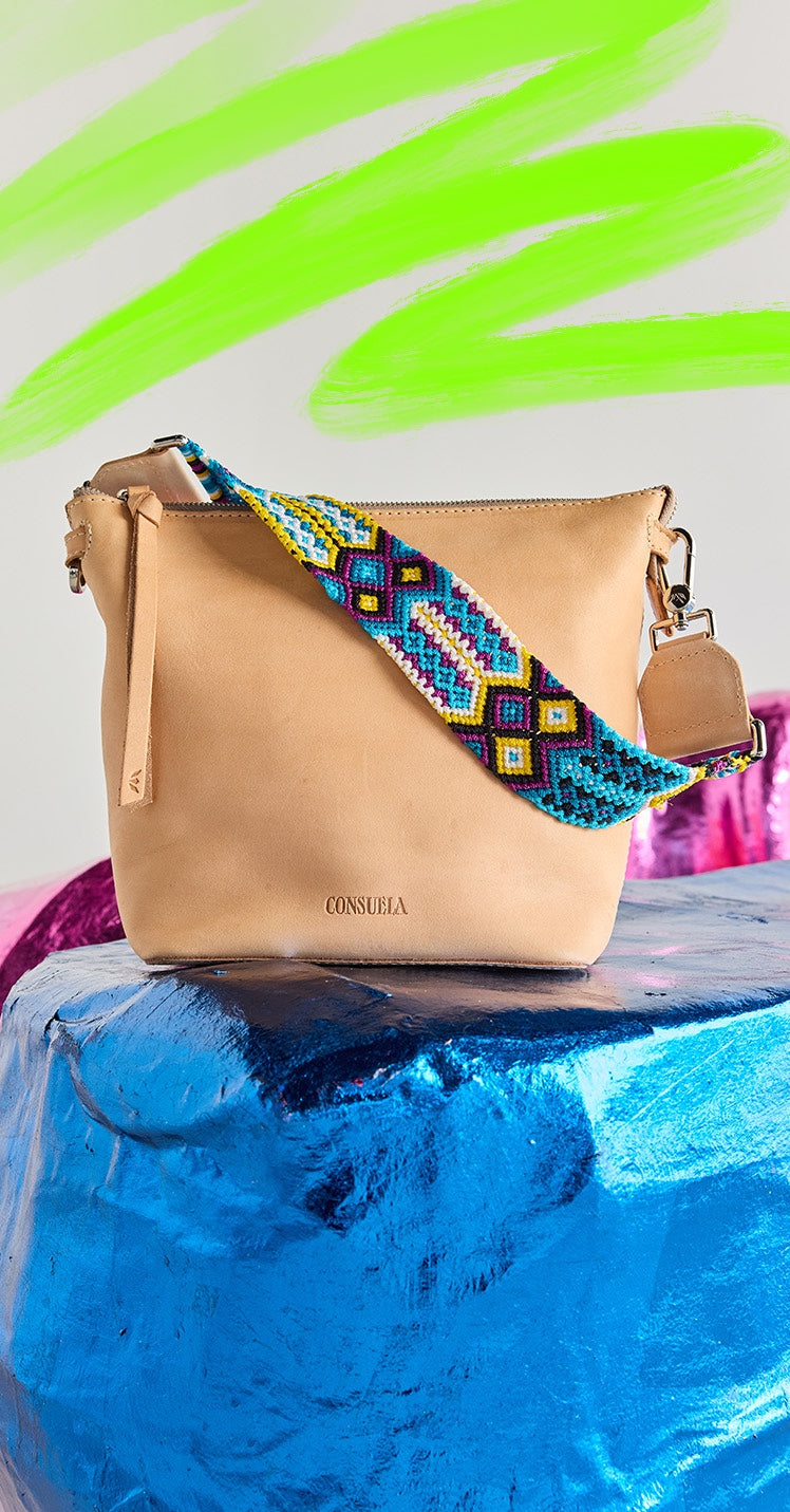 Create your own unique look with our new, hand-woven shoulder straps. These wide woven crossbody straps are trimmed in natural, untreated leather and are perfect for adding a colorful accent to any of our convertible bags including the Downtown Crossbody, Midtown Crossbody, Uptown Crossbody, Hobo, Sling, and Wedge.