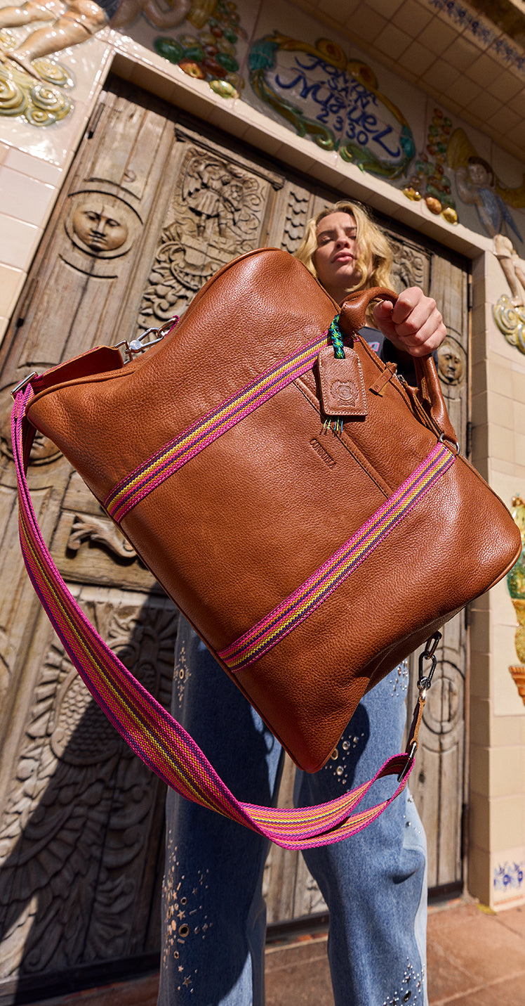 - Includes a Brandy leather bag tag secured with a hand-woven friendship bracelet