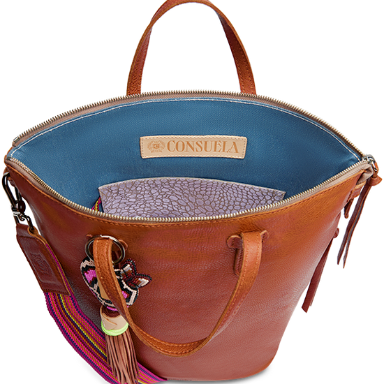 - 10 ¼” (W at the base), 14 ½” (W at the top) x 13” (H) x 6 ¾” (D), 13”-22 ¾” adjustable crossbody strap drop