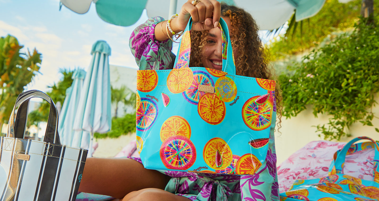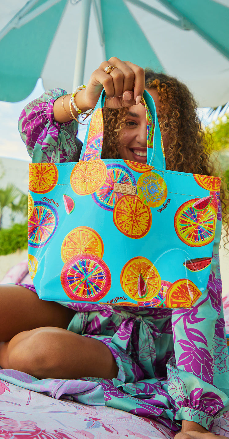 The Mini Bag was made for the little moments- carrying keys and a snack for a walk on the beach, lunch and a cold brew to the office, or for waiting patiently in the car, folded neatly under your seat. This bag made of easy-to-clean ConsuelaCloth‚Ñ¢ is the smallest of our utility tote favorites.