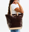- Natural leather handles and trim