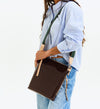 Our new, vertical crossbody has an extra front slip picket and a side zip pocket to streamline your busy life in style. Zip it up and go!