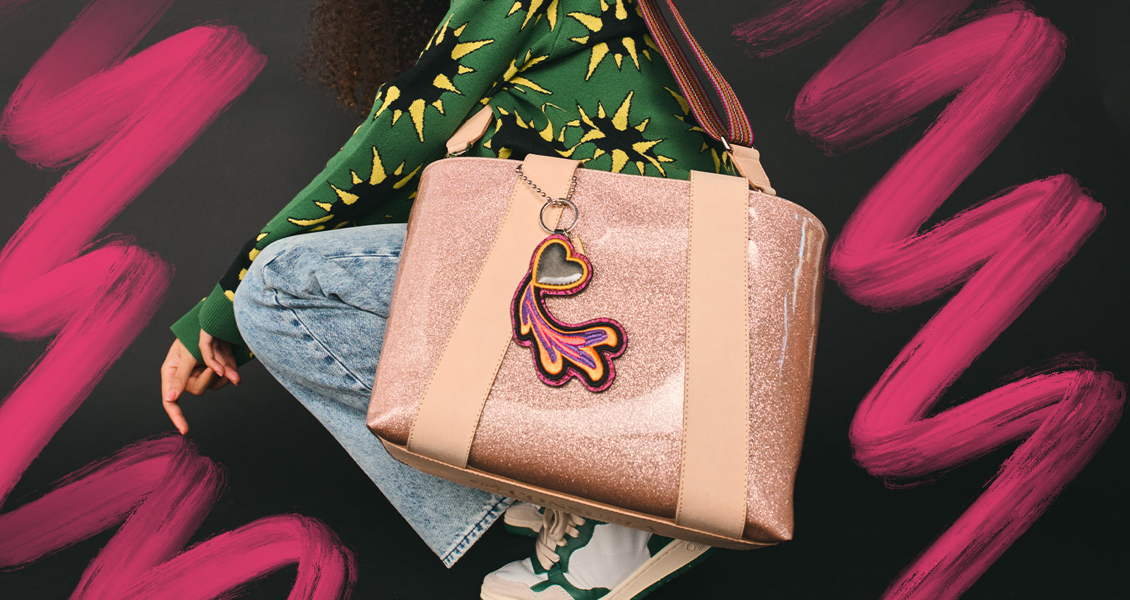 - Included woven crossbody strap