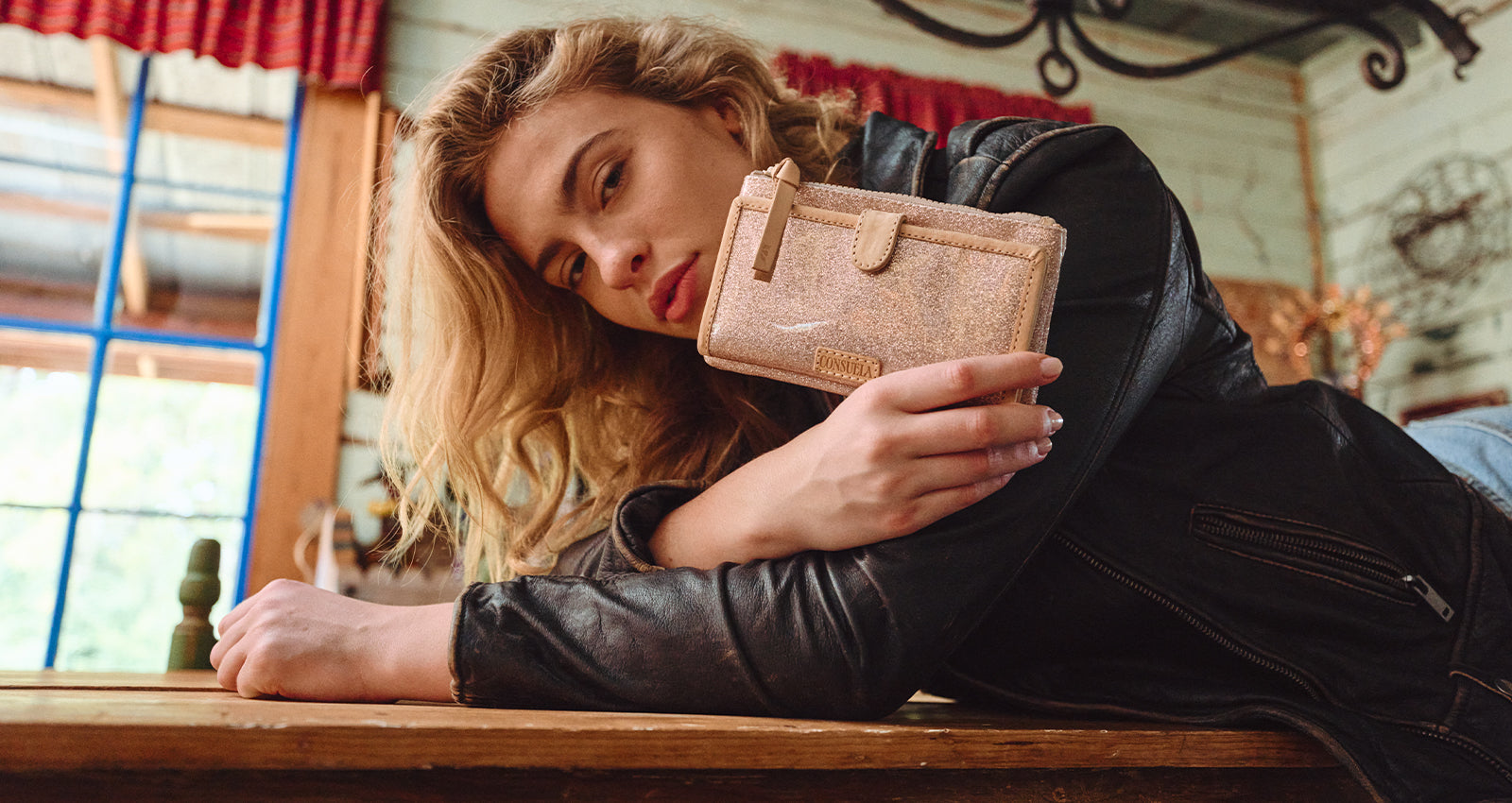- Emery champagne glitter exterior