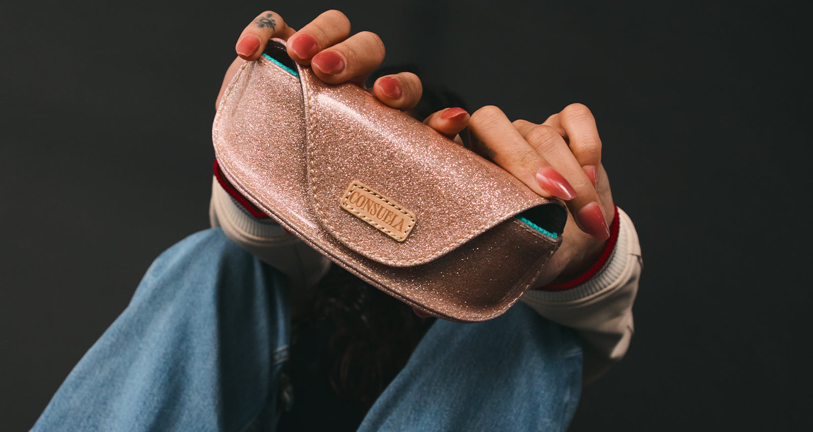 Our Sunglass Case is structured, eye-catching, and functional. This glittery case keeps your glasses well-protected and easy to spot. Secured with a magnetic closure, this colorful Sunglass Case opens and closes with ease.
