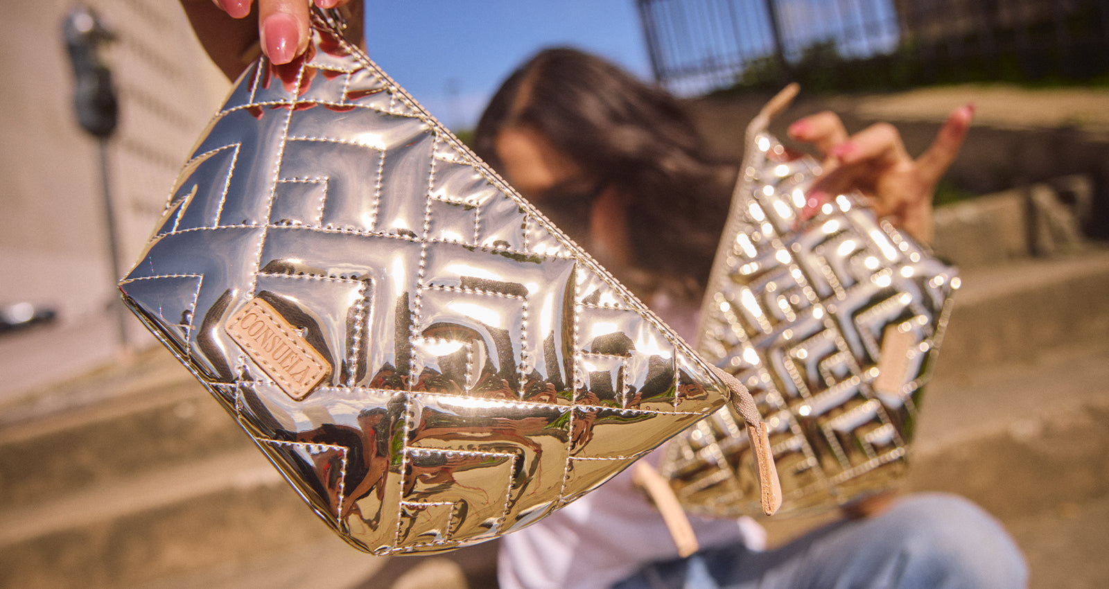 - Evadney quilted gold metallic exterior