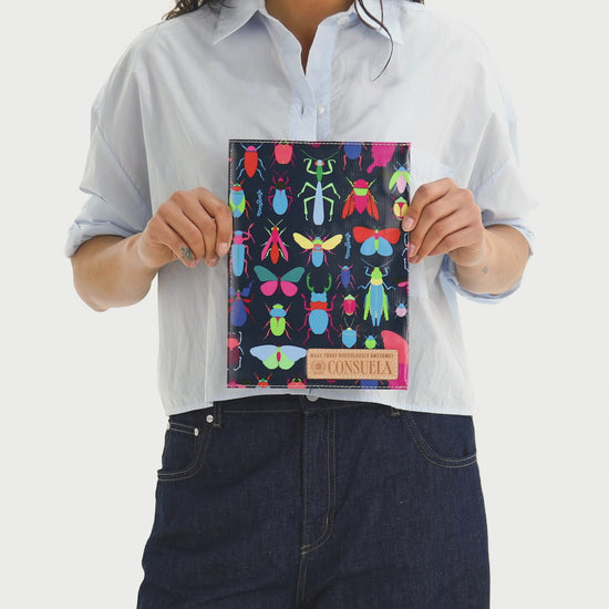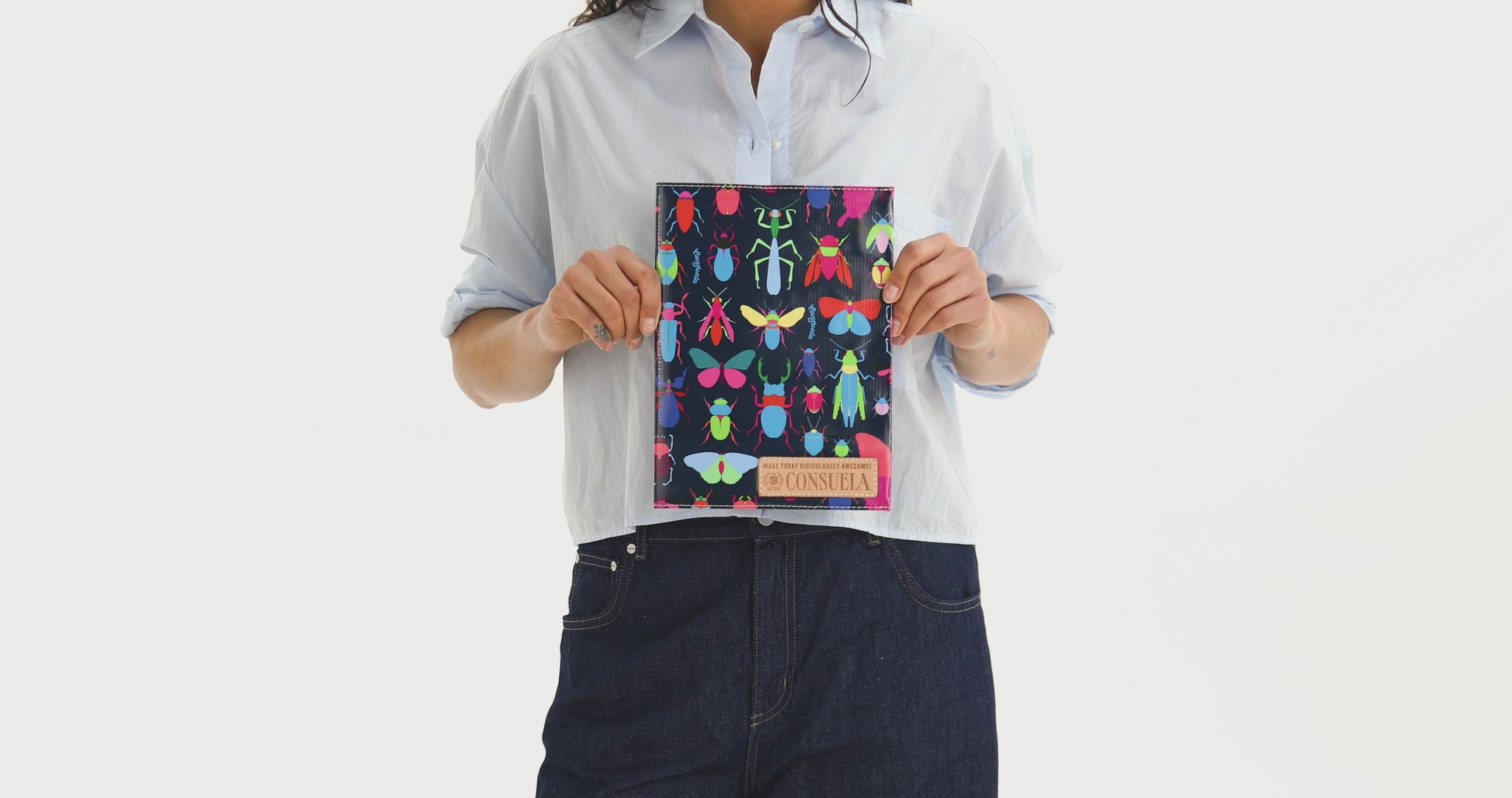 - Deep blue ConsuelaCloth™ featuring colorful bug exterior