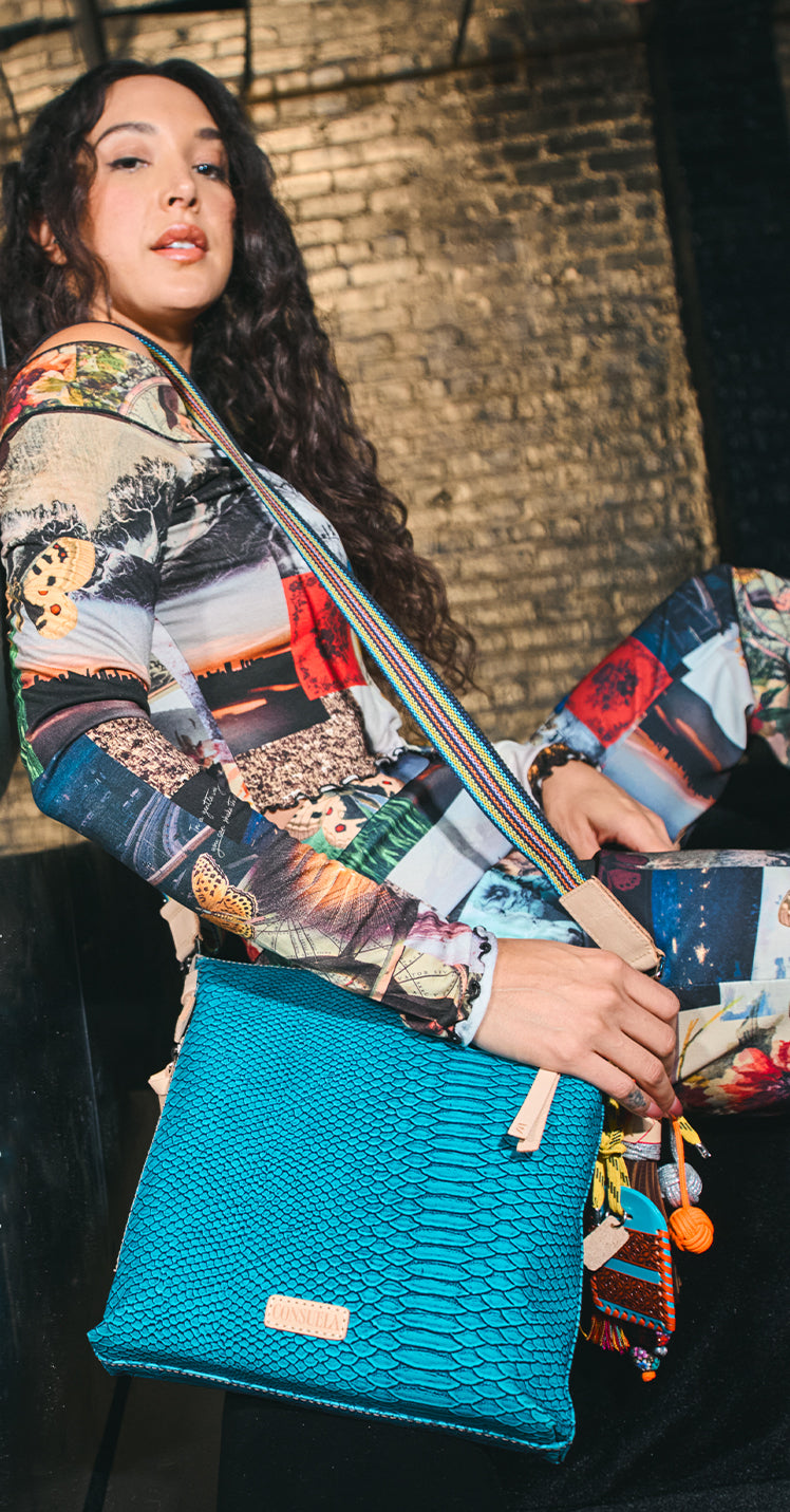 Our new, vertical crossbody has an extra front slip pocket and a side zip pocket to streamline your busy life in style. Zip it up and go!