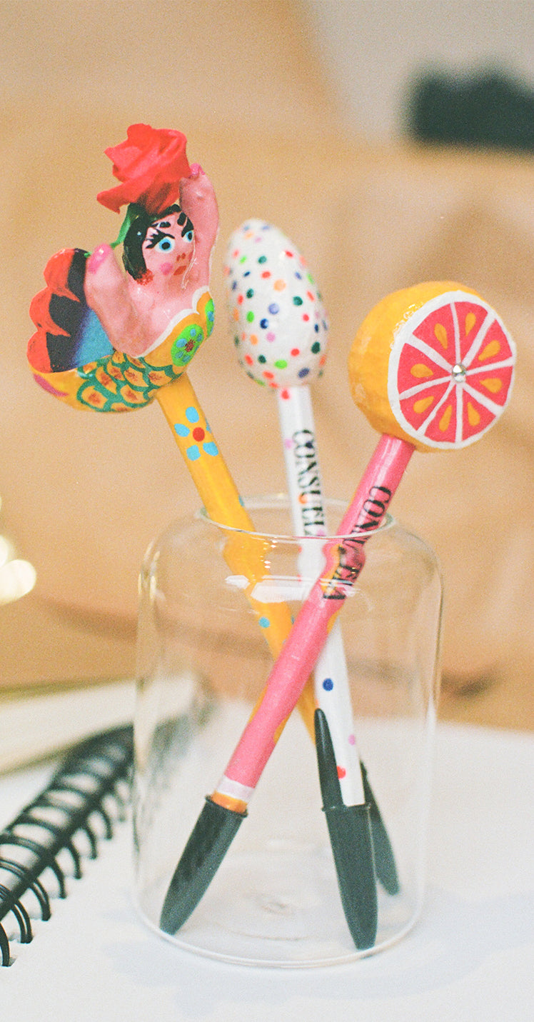 Make your mark with these paper mâché permanent makers! These markers are hand painted by artisans and made to bring light and joy wherever they go.