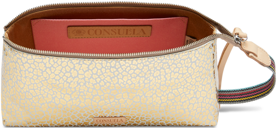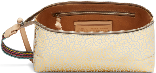 Our Tool Bag is ideal for organizing cosmetics, pencils, or journaling supplies inside a larger tote. Carry by the woven side handle or under your arm as a clutch to keep the essentials within reach.