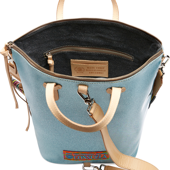 Intentionally designed for versatility, the Sling bucket bag can be worn three ways: as a crossbody, over the shoulder, or carried by its leather handles. Organize your essentials with the interior pockets and key lanyard to keep life laid-back and hands-free.