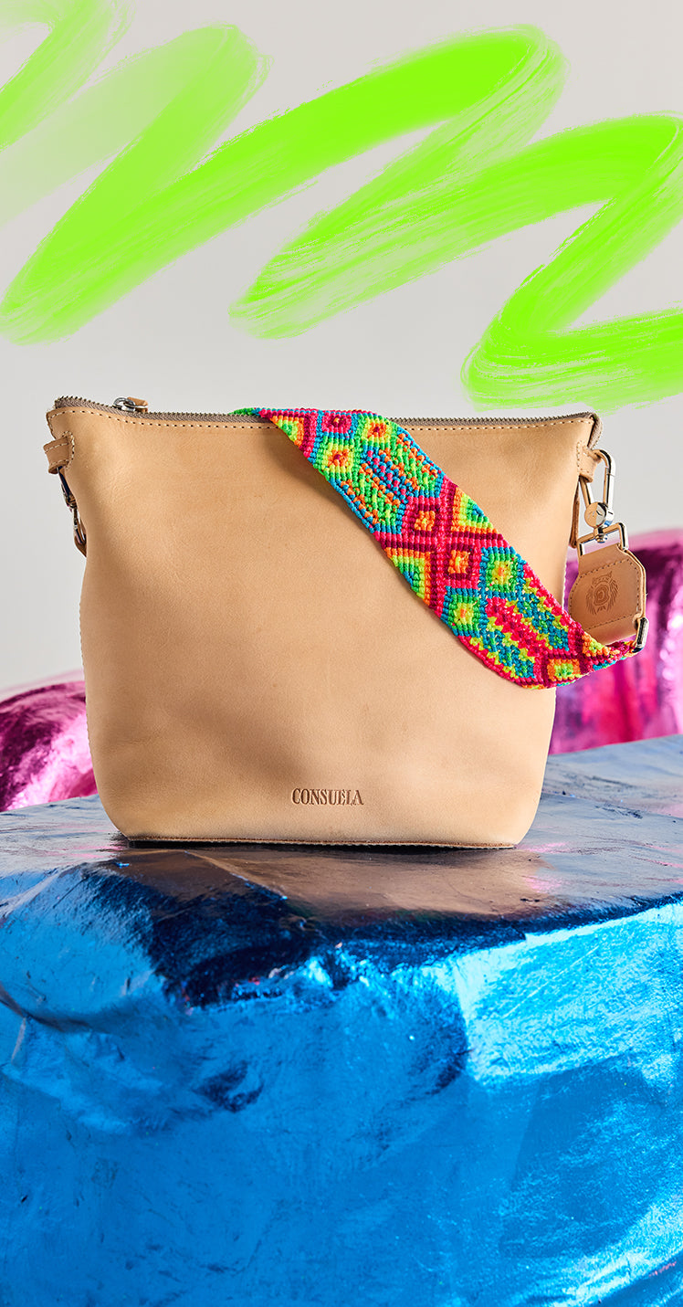 Create your own unique look with our new, hand-woven shoulder straps. These wide woven crossbody straps are trimmed in natural, untreated leather and are perfect for adding a colorful accent to any of our convertible bags including the Downtown Crossbody, Midtown Crossbody, Uptown Crossbody, Hobo, Sling, and Wedge.