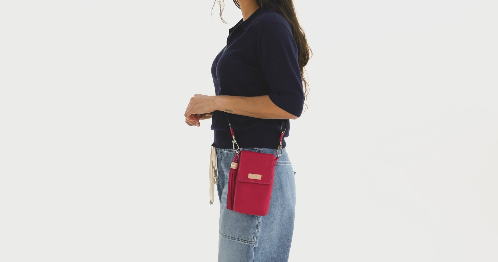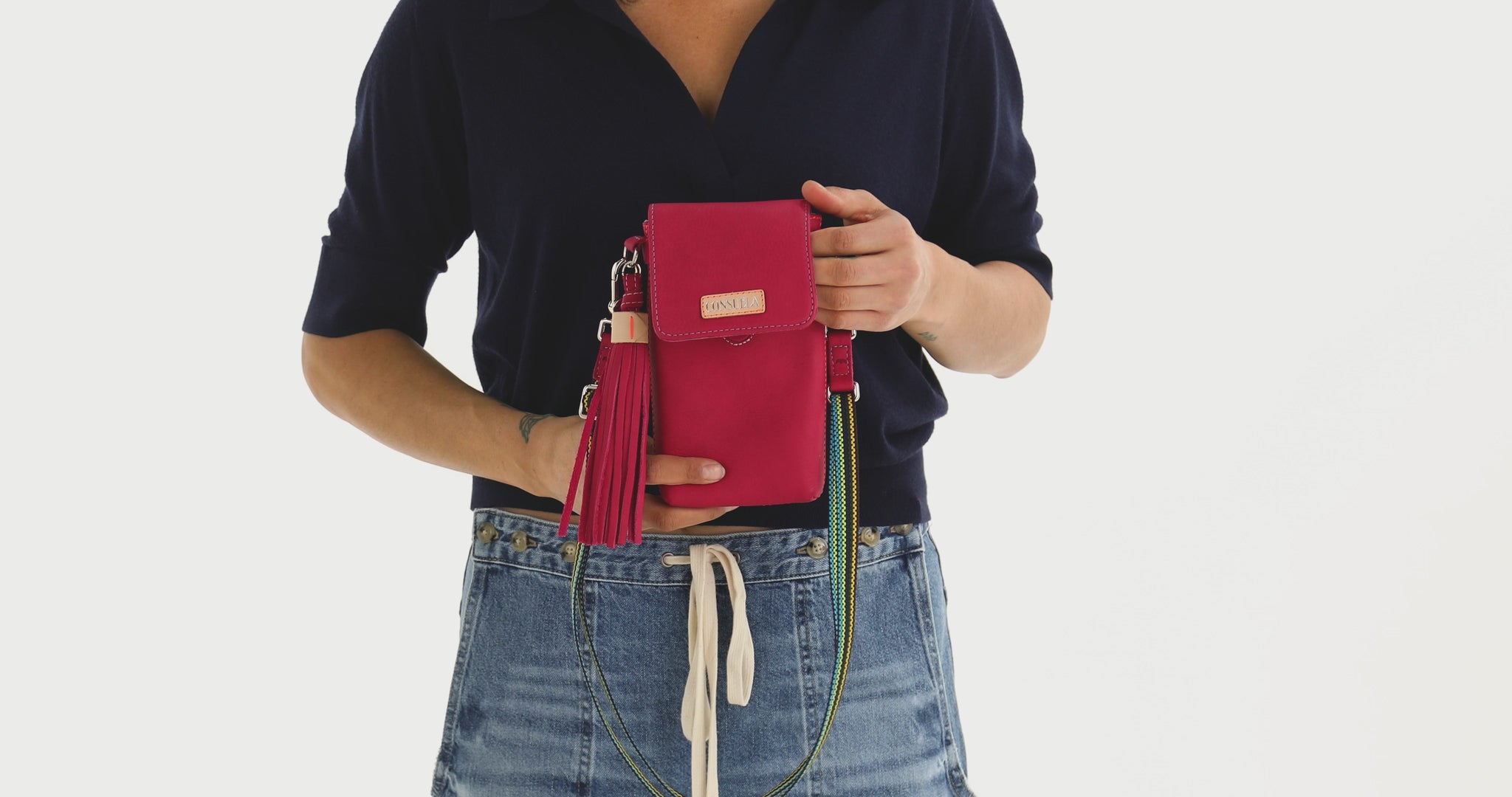 - Included adjustable woven crossbody strap