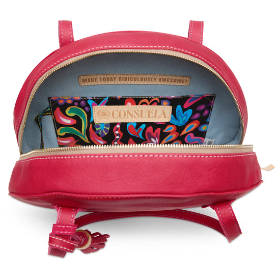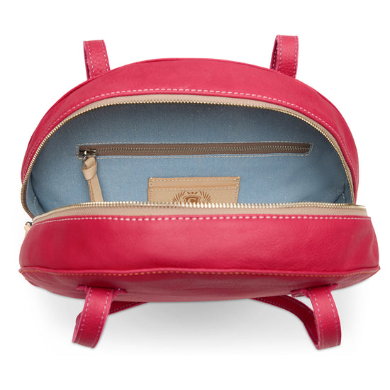 - Raspberry tone leather exterior