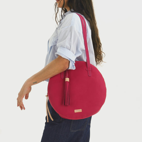 The Luna Shopper is defined by its unique circular shape and soft, relaxed silhouette. Designed with an extra-long shoulder drop, it's always comfortable to carry. Inside, you’ll find a slide pocket, lanyard, and credit card holder for effortless organization. Perfect for everyday style with a modern edge.