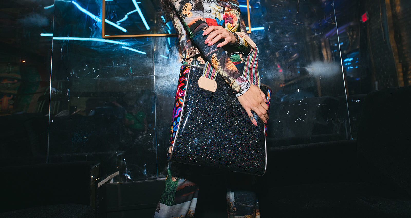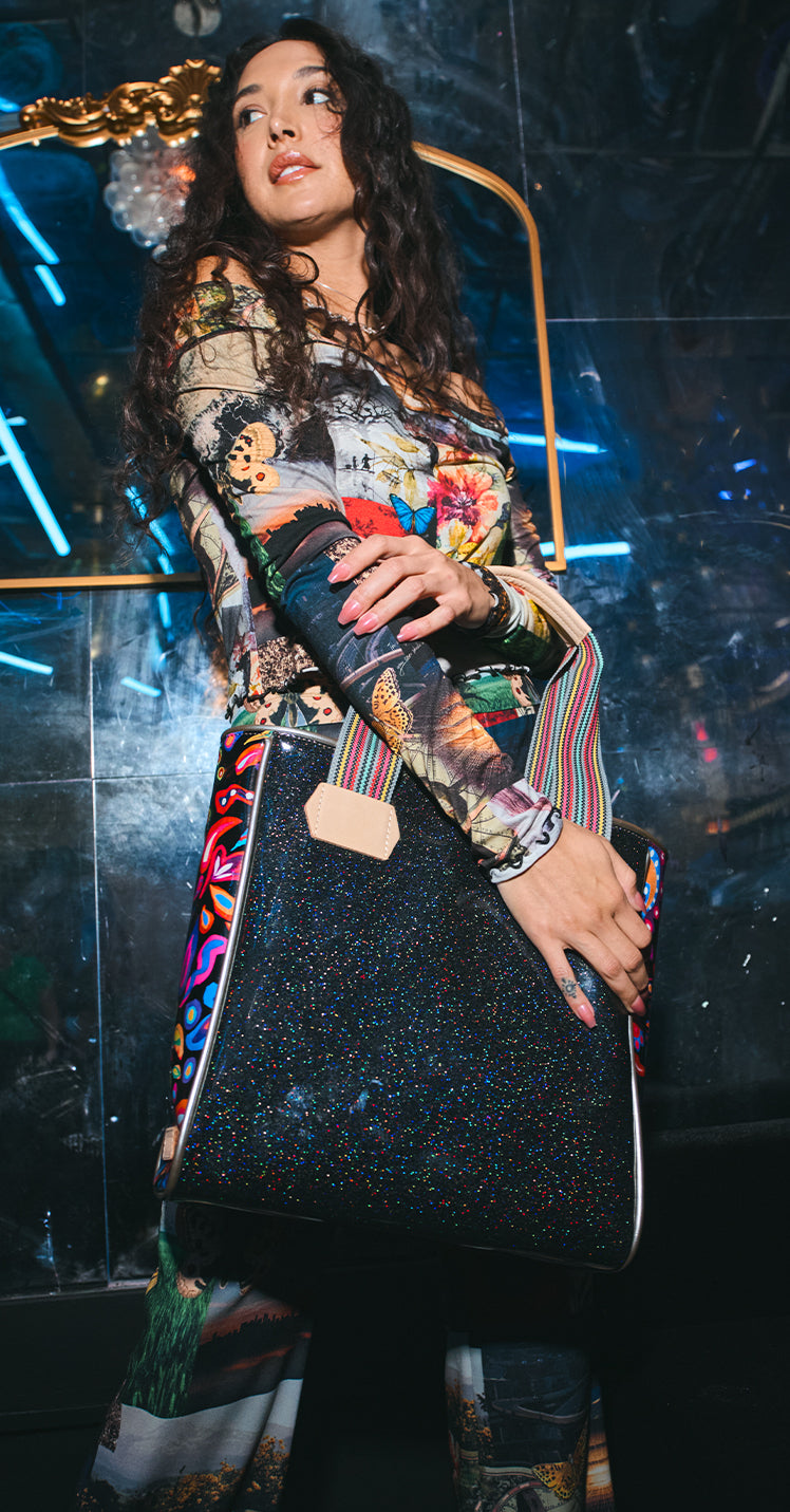 The Classic Tote has been our signature Consuela silhouette since the beginning. This sparkly tote bag holds its shape while carrying all of the essentials in our durable and easy-to-clean ConsuelaClothTM. Spilled coffee? No problem - just a quick wipe and it’s as good as new. You’re ready for anything that comes your way!