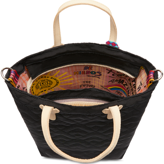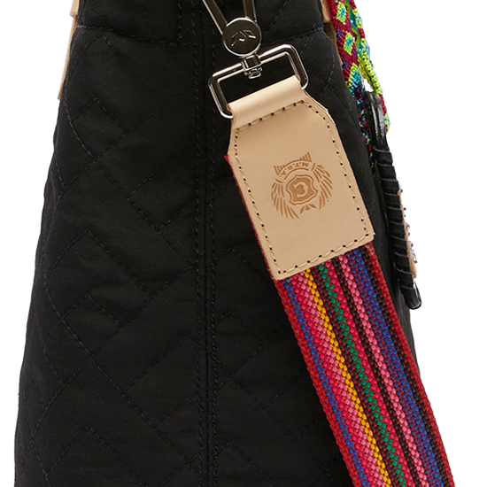 - Quilted black nylon exterior