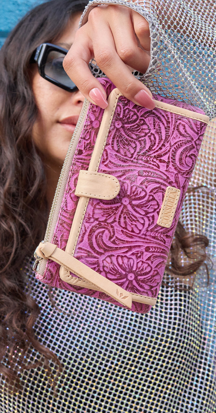 Our Slim Wallet carries cards and cash without weighing you down. Open the snap closure to reveal an ID window pocket, 12 card slots, and 4 slide pocket compartments in this versatile bifold.