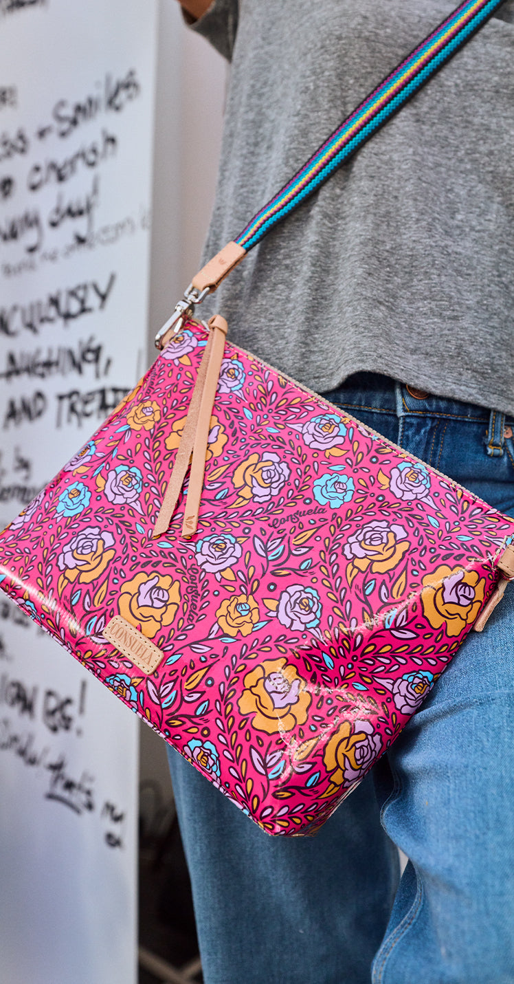 This colorful crossbody bag is ready to take on the day with an adjustable strap and two interior pockets. Crafted with a roomy open interior, the Downtown Crossbody can carry the essentials and more.