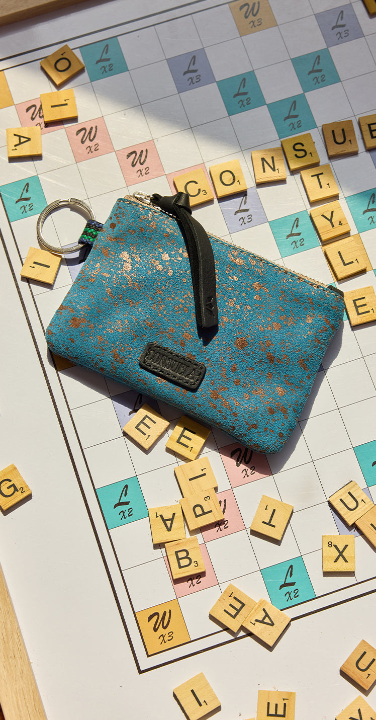 The Pouch is an easy, all-in-one bag to keep your cards and cash organized and on hand. An attached metal keyring takes this colorful pouch wallet from your bag to keys with ease.