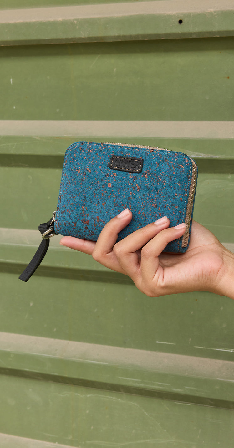 Say hello to Zippy, our newest wallet. This small, but mighty companion has both interior and exterior card slots with a zip closure. Use the D-ring to securely attach Zippy to your bag lanyard or combi wristlet.