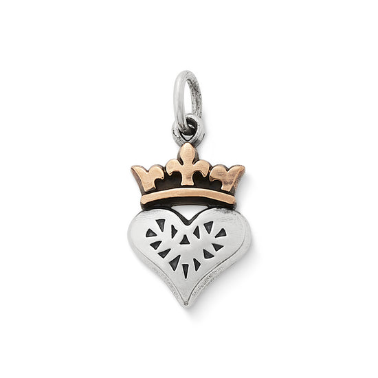 A sweet gift for the queen of your heart, this charm features a small bronze crown atop a delicately detailed sterling silver heart.