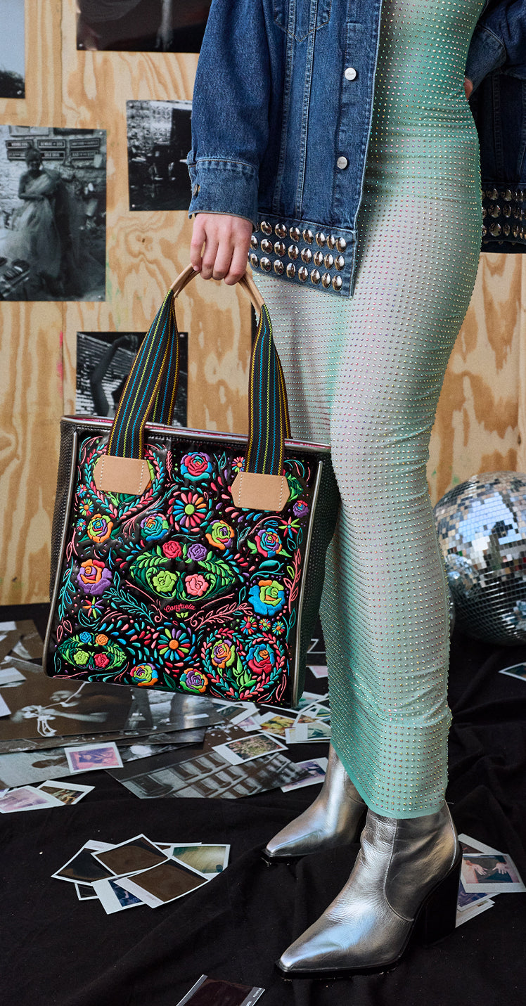 Standing the test of time, the Classic Tote has been a Consuela Classic since our beginning. This colorful embroidered tote bag holds its shape as it takes on the journey with you, carrying the essentials and bringing the energy too.