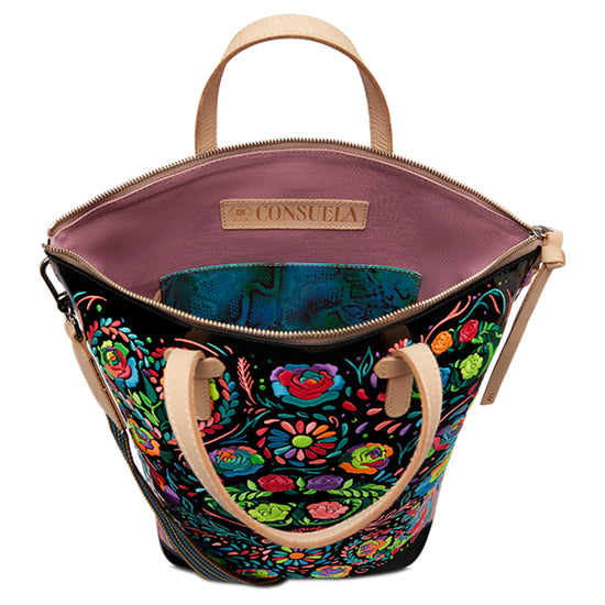 - 10 ¼” (W at the base), 14 ½” (W at the top) x 13” (H) x 6 ¾” (D), 13”-22 ¾” adjustable crossbody strap drop