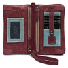 - Included detachable wristlet strap and adjustable woven crossbody strap