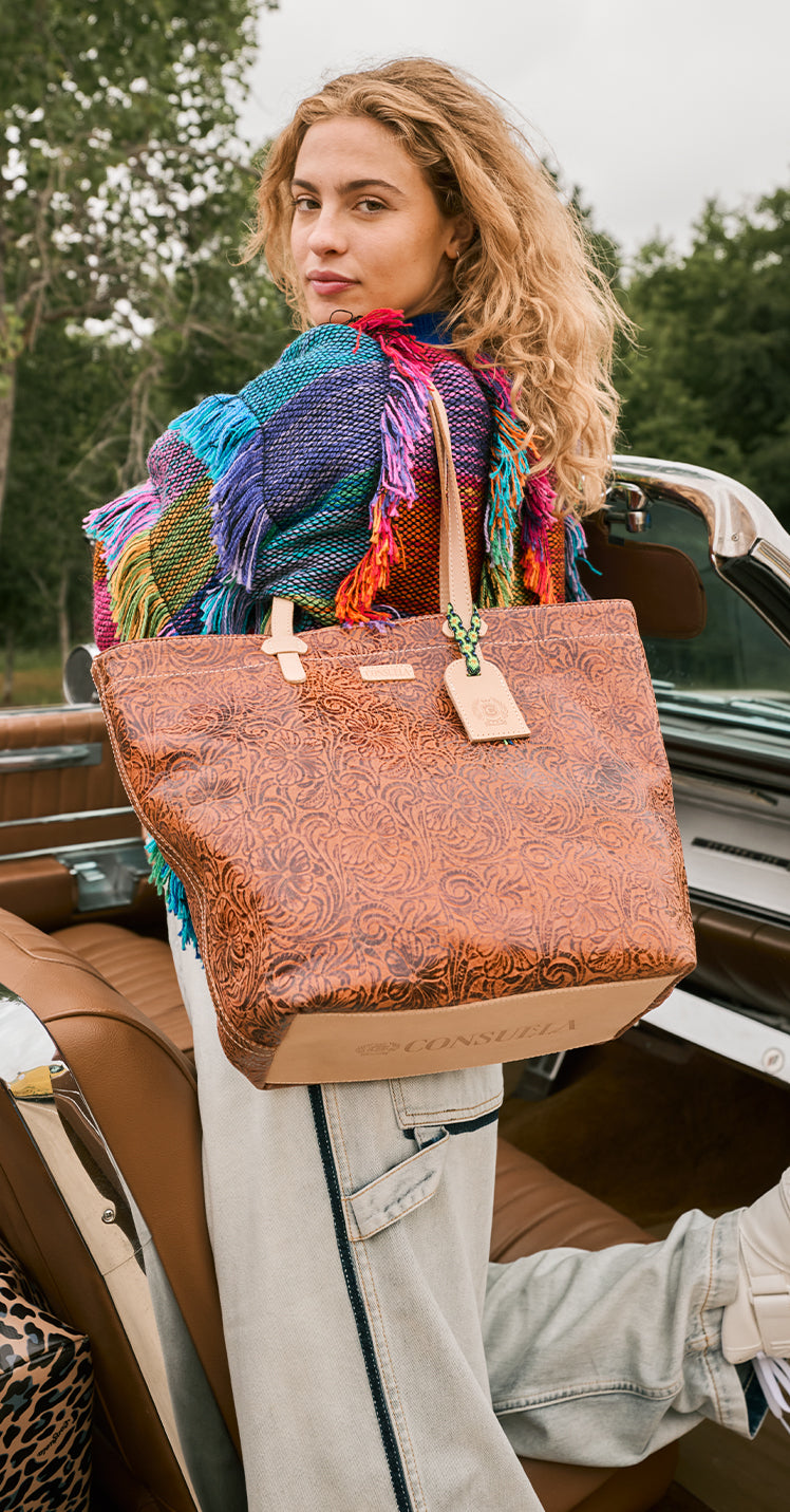 The Daily Tote is a classic with a modern shape and our go-to for the everyday haul. With its long straps, spacious interior, and zippered closure, this leather tote bag is comfortable to carry everything you need! Stay organized with the interior slide pocket and hook-clip lanyard for keys.