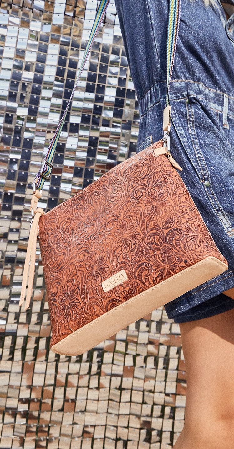 This colorful crossbody bag is ready to take on the day with an adjustable strap and two interior pockets. Crafted with a roomy open interior, the Downtown Crossbody can carry the essentials and more.