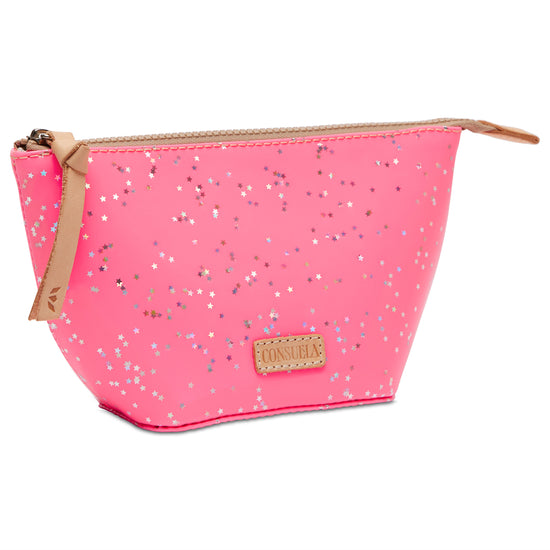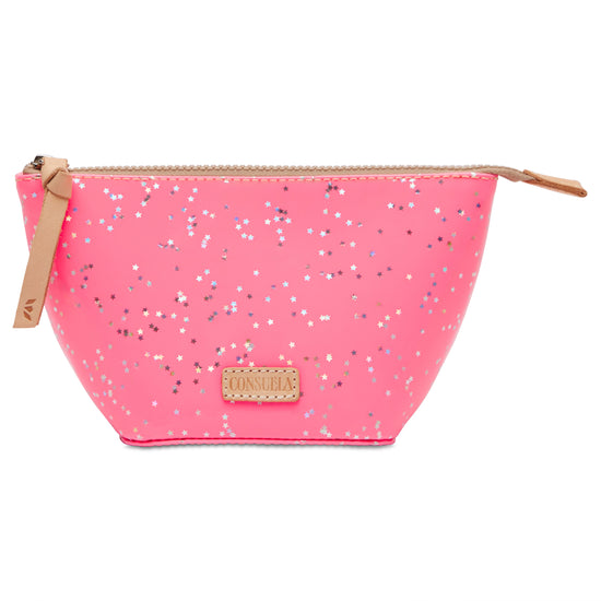 - Neon pink patent star glitter exterior