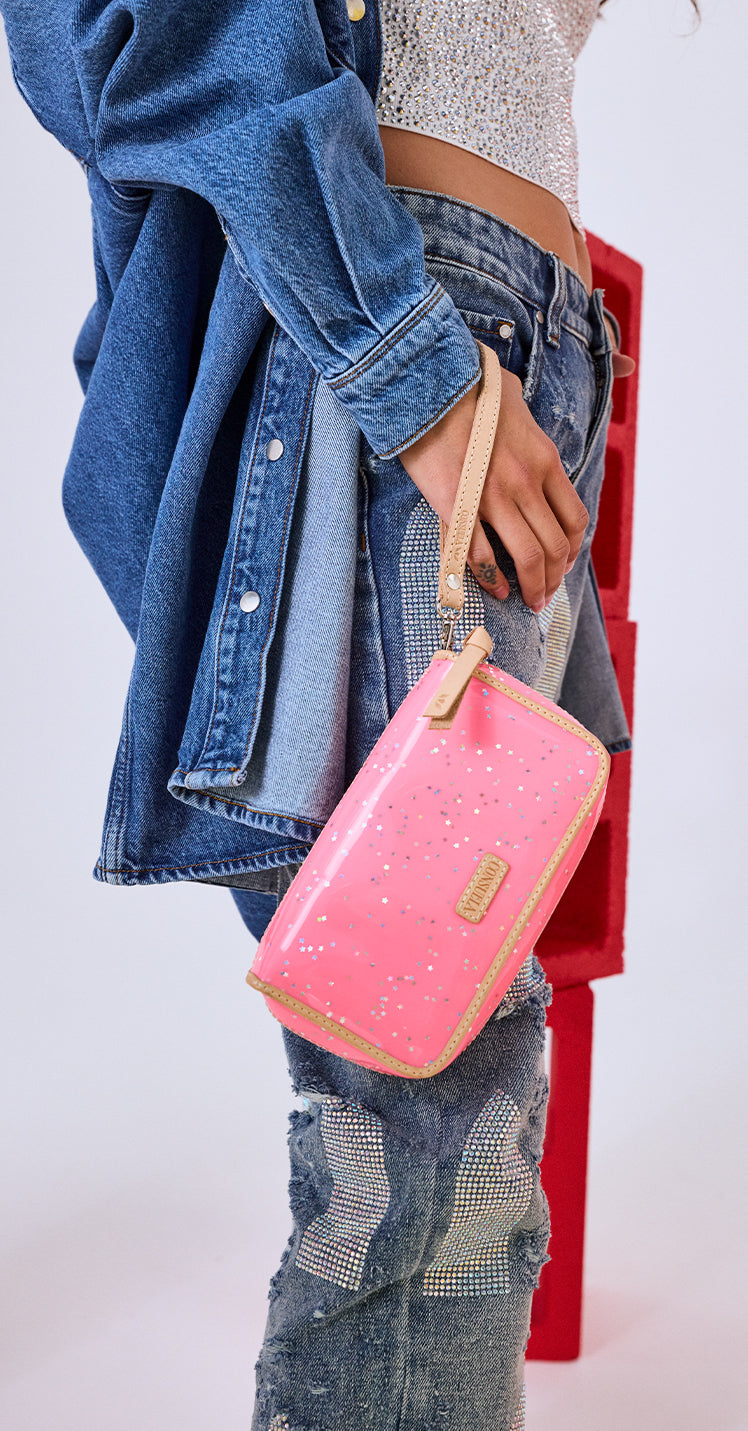 This accessory is functional for everyday use on its own or great for organization inside a larger bag. The colorful Wristlet Wallet expands when unzipped to allow ample space for card organization and can be held by the included wristlet strap.
