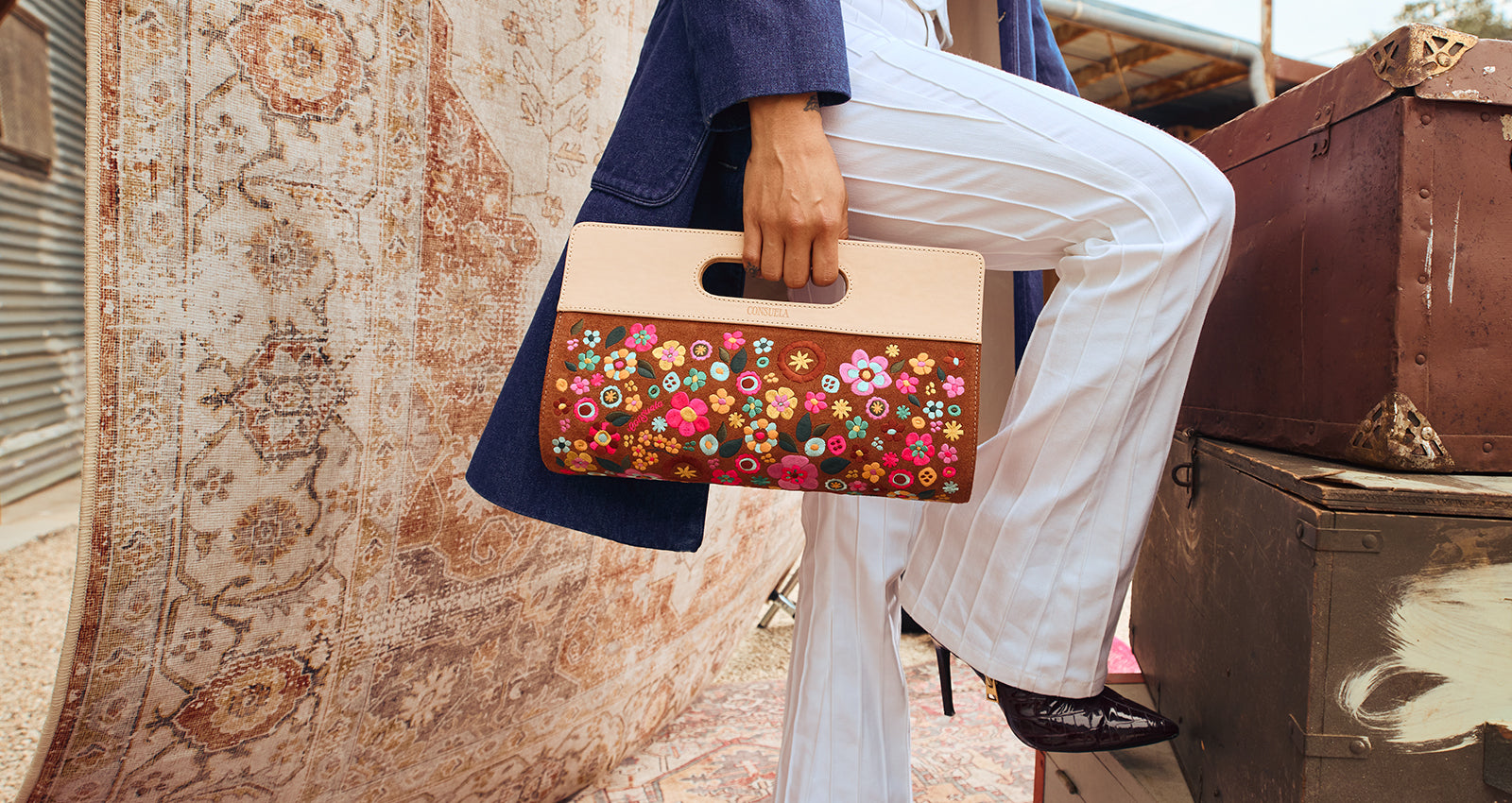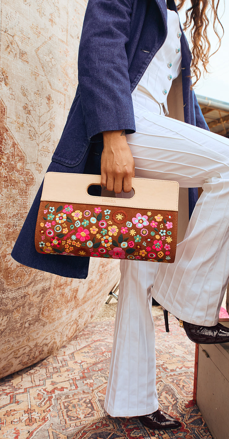 Supercharge your day with our newest clutch! This Diego leather-trimmed, hand-held clutch has plenty of storage for a bold and chic style.