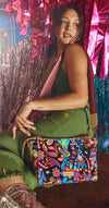 - Includes detachable and adjustable woven crossbody strap