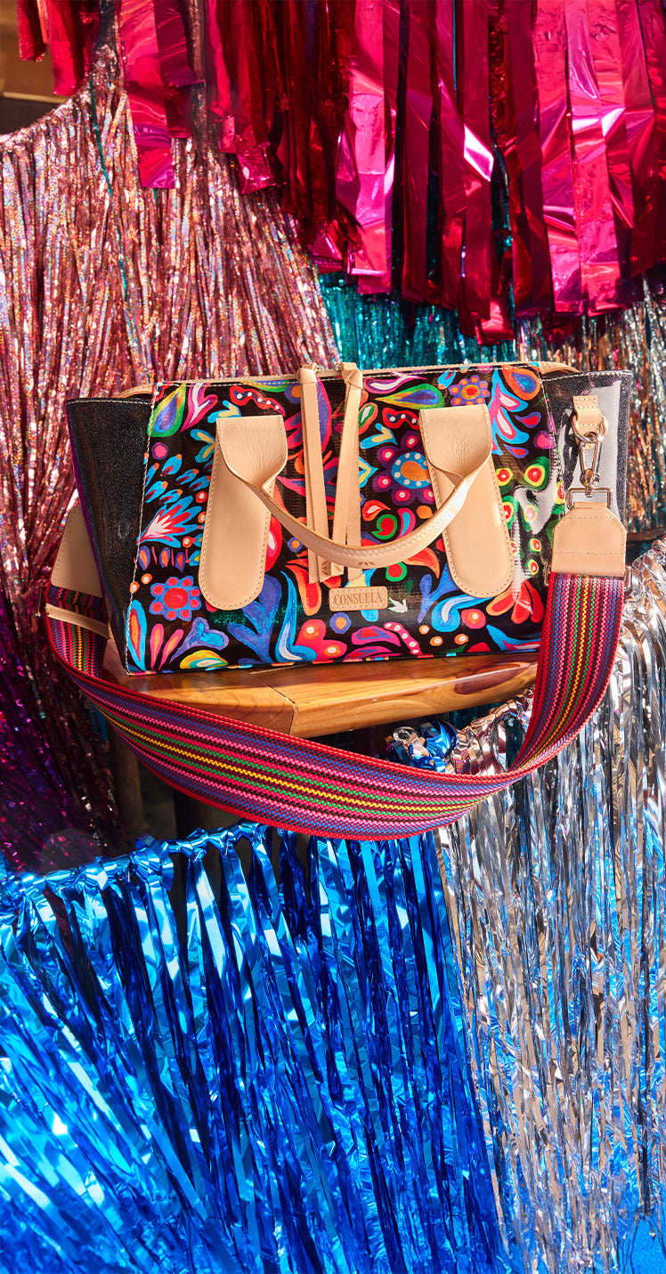 - 14” (W) x 8 ¾ ” (H) x 6” (D), 14 ½”-27” adjustable crossbody strap drop