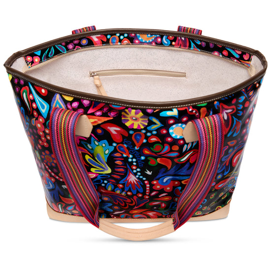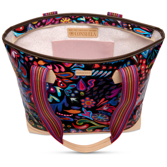 Our Sophie Zipper Tote will keep your essentials secure with style and is perfect for a day at the beach or as a carry-on for your next getaway! Crafted with our Sophie ConsuelaCloth exterior and comfortable woven handles, this bag has plenty of storage space and functional interior pockets for your wallet, keys, and phone.