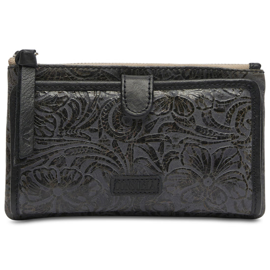 - 12 card slots, ID window, and 4 slide pocket compartments with snap closure