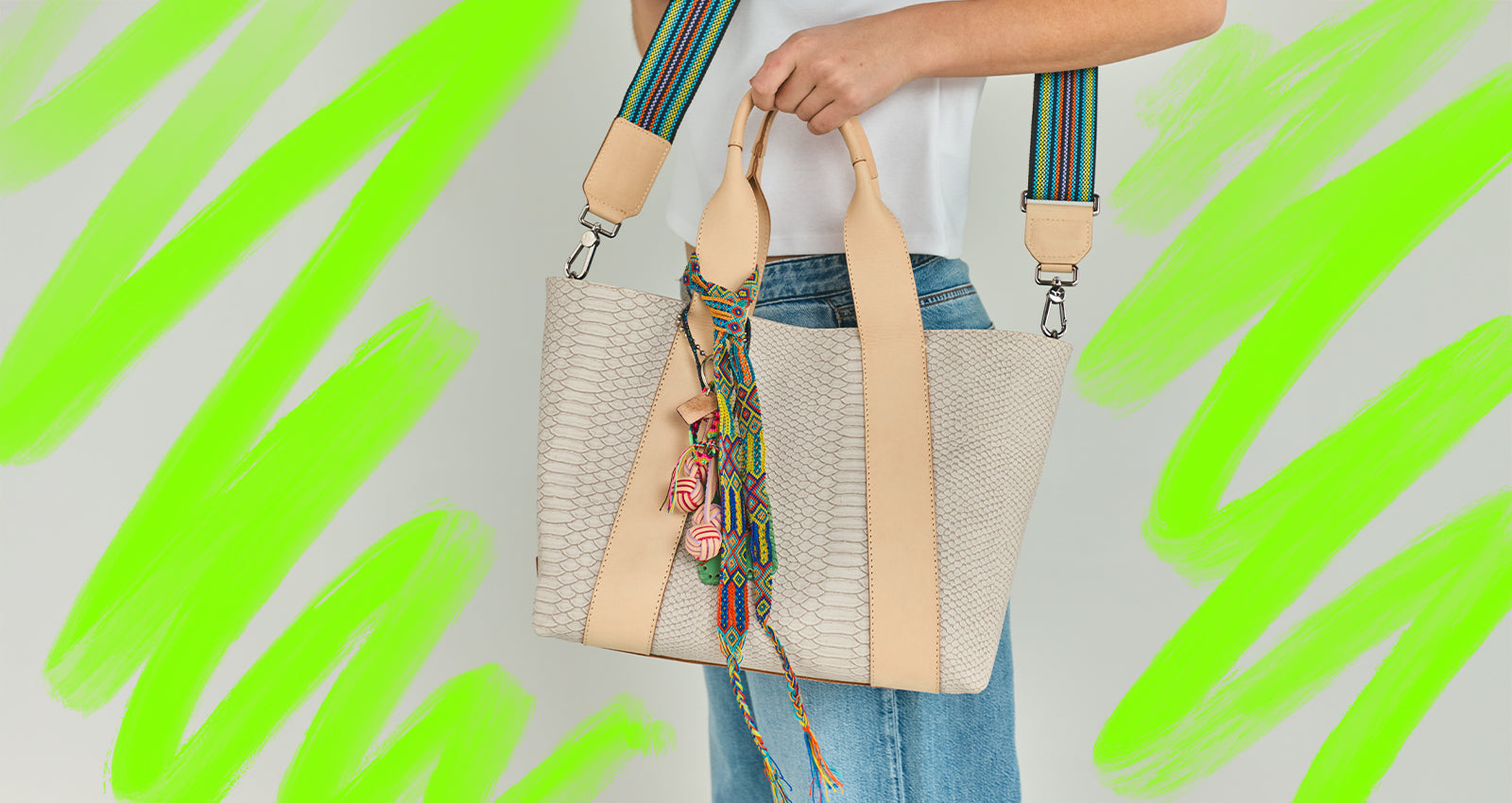 - Included woven crossbody strap
