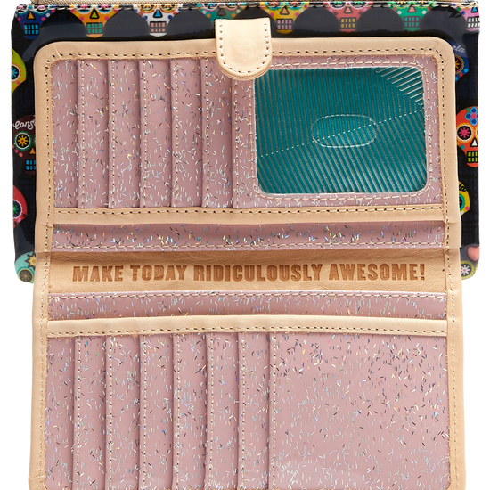 Our Slim wallet carries cards and cash without weighing you down. Open the snap closure to reveal an ID window pocket, 12 card slots, and 4 hidden slide compartments in this versatile bifold.