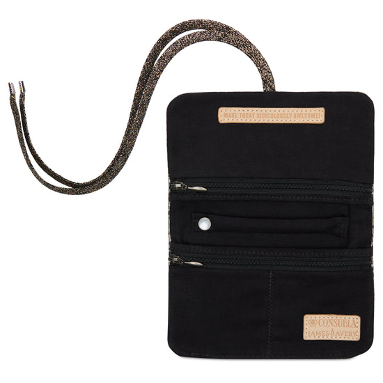 James Avery’s original jewelry keeper reimagined with a Consuela twist. This quintessential travel companion comes with three zipper compartments, three additional pockets and snap in ring holder. This on-the-go keeper comes with a metallic lace fastener to keep your jewelry secure during your adventures.